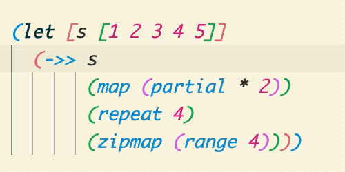 Rewrap | Changes enclosing brackets of the current form to parens/square brackets/curlies/double quotes and set (#{}) ![]() |